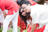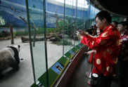 新人身着唐装探望赠台国宝——团团”“圆圆”