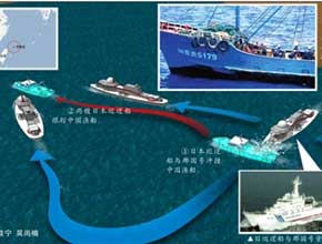 | 2010年9月7日上午10点15分左右,一艘中国渔船在钓鱼岛海域同日本海上保安厅巡逻船发生相撞。随后,日本海上保安官进入中国渔船进行“检查”。中国外交部发言人在当日的发布会上要求,日本巡逻船不得在钓鱼岛附近海域进行所谓执法活动;中国外交部副部长宋涛也在当日奉命约见日本驻华大使丹羽宇一郎,要求日方停止非法拦截行动。而日方则在当日夜间决定,计划以涉嫌妨碍执行公务为由逮捕中国渔船船长。 |