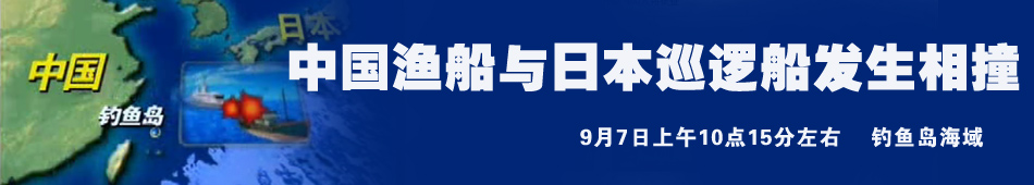 2010年9月7日上午10点15分左右 中国渔船撞上日本巡逻船 在钓鱼岛海域久场岛西北偏北约12公里海域,一艘中国拖网渔船船头撞上了日本海保巡逻船“与那国”(Yonakuni)号船尾附近。[详细] |