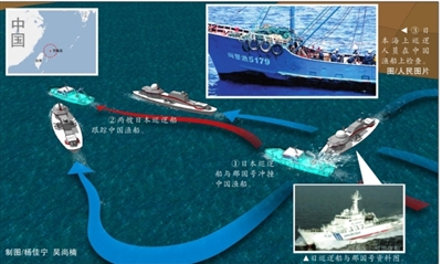 日巡逻船钓鱼岛冲撞我渔船 日22名保安官登船宣称检查 我要求日方停止非法拦截行动