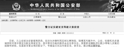 昨天,公安部网站发布消息证实,公安、检察机关多渠道获取对谢亚龙、李冬生、蔚少辉等人涉案的线索和举报。在国家体育总局的配合下,专案组已依法对谢亚龙、李冬生、蔚少辉立案侦查。