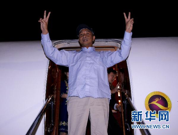 9月25日1时12分,由外交部和农业部组成的联合工作组已接护中国渔船船长詹其雄,乘坐中国政府包机启程回国。新华社记者陈建力摄