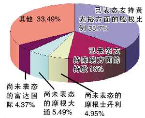 从公开表态的情况来看,黄光裕阵营除了自己的32.47%股权外,还有黄光裕好友郑建明2%、表明“挺黄”的内地股民欧阳雪初方面0.6%的股权支持,合计持股大概是35.7%。