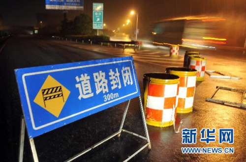 10月5日,海南东线高速公路封闭。新华社记者 郭程 摄