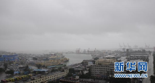 10月5日,乌云笼罩海口秀英港口。新华社记者 王存福 摄