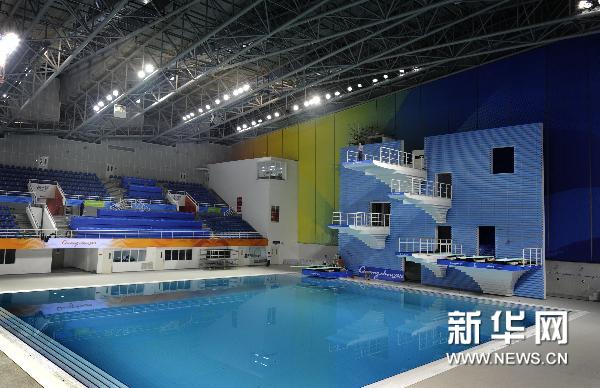 图为10月11日拍摄的广东奥林匹克游泳跳水馆的跳水池。新华社记者卢汉欣摄