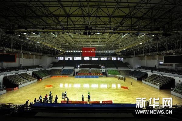 大学城广东工业大学体育馆位于广州大学城,总建筑面积14050平方米,场馆座席约4200个。广州亚运会的手球比赛将在这里举行。图为大学城广东工业大学体育馆内景(10月10日摄)。新华社记者卢汉欣摄