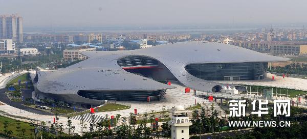 这是10月8日拍摄的广州亚运城综合体育馆。广州亚运城综合体育馆包括体操馆、台球壁球馆及广州亚运历史博物馆。该项目建设用地面积101086平方米,总建筑面积65315平方米,是广州亚运会规模最大的新建场馆。亚运期间承办的比赛项目为体操、艺术体操、蹦床、台球、壁球。赛后将改建为广州亚运新城,集体育、商业、公共服务等多功能于一体的建筑综合体及城市休闲广场,服务于市民。综合体育馆的体操馆设固定观众席位6233个,赛后可改造为8000座篮球馆,功能设计具有多种灵活性。广州亚运城综合体育馆的设计灵感来源于体操运动员手中五彩斑斓的彩带,这个建筑蓝灰绿色的幕墙外形和曲度优美的不锈钢金属屋面极具现代理念,旋律般流动的屋顶、炫目而流畅的建筑形态,充满力量、速度和技巧的动感,从不同角度都呈现出独特的景观。新华社记者卢汉欣摄