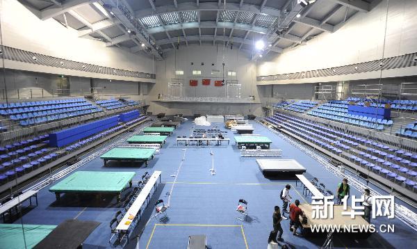 这是10月9日拍摄的正在建设中的广州亚运城综合体育馆台球馆。广州亚运城综合体育馆包括体操馆、台球壁球馆及广州亚运历史博物馆。该项目建设用地面积101086平方米,总建筑面积65315平方米,是广州亚运会规模最大的新建场馆。亚运期间承办的比赛项目为体操、艺术体操、蹦床、台球、壁球。赛后将改建为广州亚运新城,集体育、商业、公共服务等多功能于一体的建筑综合体及城市休闲广场,服务于市民。综合体育馆的体操馆设固定观众席位6233个,赛后可改造为8000座篮球馆,功能设计具有多种灵活性。广州亚运城综合体育馆的设计灵感来源于体操运动员手中五彩斑斓的彩带,这个建筑蓝灰绿色的幕墙外形和曲度优美的不锈钢金属屋面极具现代理念,旋律般流动的屋顶、炫目而流畅的建筑形态,充满力量、速度和技巧的动感,从不同角度都呈现出独特的景观。新华社记者卢汉欣摄
