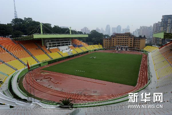 广州市越秀山体育场位于广州市越秀公园南侧,这个体育场建于1950年,现整体占地面积约为5万平方米,场内面积约为3万平方米。在广州亚运会期间将承办9场亚运会足球比赛。图为10月10日拍摄的越秀山体育场。新华社记者卢汉欣摄