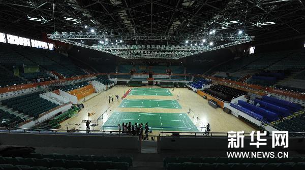 广州天河体育馆位于天河体育中心西南角,建筑面积17159平方米,属综合性多功能场馆。为了承办亚运会赛事,天河体育馆进行了改造。天河体育馆将在广州亚运会期间承担羽毛球比赛和部分篮球比赛。图为10月10日拍摄的改造后的天河体育馆。新华社记者卢汉欣摄