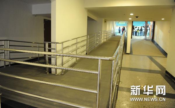 图为10月10日拍摄的改造后的天河体育馆内专门为残疾人士搭建的无障碍通道。新华社记者卢汉欣摄