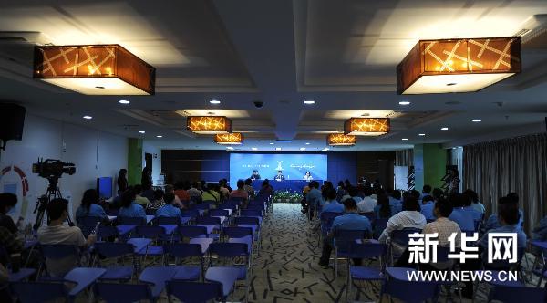 图为天河体育场新闻发布厅(10月10日摄)。新华社记者卢汉欣摄