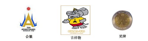 第13届亚运会会徽主体为泰国尖顶佛塔,设计和第9届亚运会异曲同工,都是形成一个"A"字,并衬托着太阳标志,代表亚洲人民亲如一家。