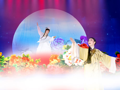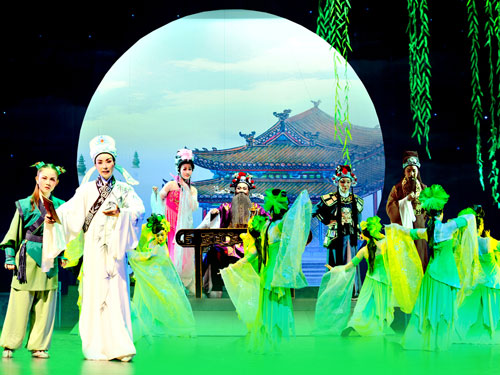 新编梦幻传奇越剧《西湖遗梦》是根据传统故事《李慧娘》而改变的。《李慧娘》作为京、昆的传统经典剧目更是脍炙人口,久演不衰。我们的意图是通过一出形式多样化的戏,在尊重、把握和弘扬越剧不可替代的传统性与独特性的同时,注重在表演艺术和表演形式上博采众长,融唱、念、做、打、绝技于一体,汇戏曲、歌舞、魔术、杂技为一体,来突出夸张人物塑造,强化戏剧舞台效果。在戏中如耍牙、变脸、变衣、变扇、飞人等特技绝活都充分得到体现。“戏无情不动人,戏无理不感人,戏无技不惊人”,通过合理运用中国戏剧的各种表演特技,来迎合现代观众的审美要求,打响自己的品牌,拓宽演出市场。因此,从一定意义上该戏的创作与构思,是对越剧表演形式的一场大胆改革与创新,更是一次突破与超越。