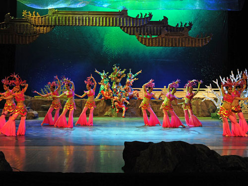 二十四年前,舟山市越剧团根据这一舟山民间故事—“船眼睛的传说”创排了越剧《海明珠》,她以浓郁的海洋文化享誉江浙沪地区。大型越歌风情剧《东海明珠》正是根据越剧《海明珠》大胆创新改编而成,是舟山市艺术剧院组建后推出的首部海洋文化精品大戏,也是向新中国成立60周年和舟山大桥贯通献礼的优秀文化作品。该剧情节离奇、内容感人、风情独特、矛盾激烈,人美、情美、景美,越音缭绕,渔歌晚唱,带我们一同走进一个充满渔家风情的海洋文化故事天地……
