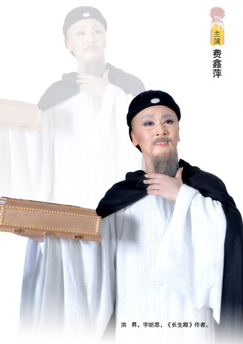 洪昇扮演者——费鑫萍,1986年1月出生,主攻小生(尹派),2002年毕业于嵊州市越剧艺术学校,余杭区戏剧家协会会员。曾在《吕布与貂蝉》中饰演吕布、《洗马桥》中饰演刘文龙、《狸猫换太子》中饰演陈琳、《唐伯虎》中饰演唐伯虎、《汉文皇后》中饰演窦广平、《杨乃武》中饰演杨乃武、《秦香莲》中饰演陈世美、《五女拜寿》中饰演邹士龙、《宫墙柳》中饰演张敏、 《荆钗记》中饰演王十朋、《红丝错》中饰演张秋人等。曾获2008年第四届“良渚文化杯”全国戏曲演唱大赛金奖,并誉为“越剧新星”称号。