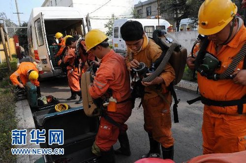 16日6时左右,位于河南禹州市的平禹煤电公司四矿发生瓦斯突出事故,截至16日13时,平禹煤电公司四矿已发现有20名矿工遇难,井下尚有17人被困。目前救援工作在紧张进行中。新华社记者朱祥摄