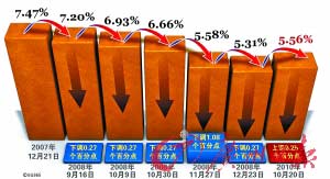 中国人民银行决定,自今日起上调金融机构人民币存贷款基准利率。一年期存款基准利率上调0.25个百分点,由现行的2.25%提高到2.50%;一年期贷款基准利率上调0.25个百分点,由现行的5.31%提高到5.56%。这次加息距离2007年的最后一次加息,已时隔34个月。