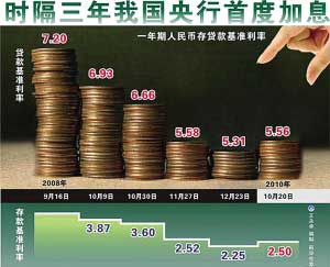 “尽管此次加息了,但居民消费价格的上涨仍然会让存款‘缩水’”。省城银行理财专家给记者算了一笔账,按照此前的一年定期存款利率2.25%计算,以1万元的存款为例,1年下来即使不计利息税将获得225元的利息,变成10225元,但是在3.5%的CPI增幅下,其实际购买力却只相当于一年前的9879.23元,当中相差的120.77元就被负利率给吞噬了。在加息后,一年定期存款利率提高为2.50%,相比未加息前一年的存款利息约增加25元,但总体收益,相比居民消费价格上涨带来的实际购买力“贬值”来说,仍是负利率。记者 王绪松