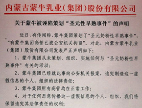 10月19日,网爆包括“圣元激素门”、伊利“QQ星”及多家婴幼儿鱼油含EPA会导致性早熟等皆为蒙牛策划。蒙牛、伊利先后发表声明。