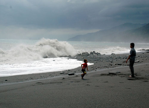 组图:台风“鲇鱼”影响 台东海岸现晴天巨浪