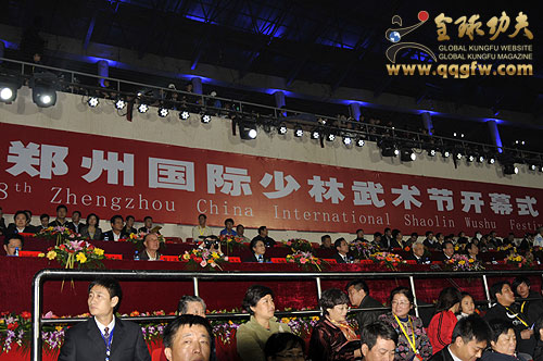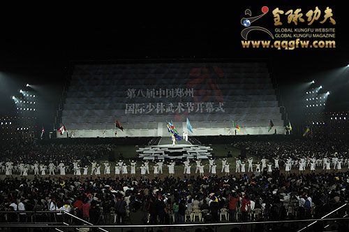 当晚,第八届中国郑州国际少林武术节开幕式文艺晚会可谓众星云集、星光璀璨。著名女高音歌唱家、国家一级演员张也、著名青年歌唱家、国家一级演员谭晶、超人气组合飞儿乐团、最受欢迎摇滚歌手汪峰、亚洲小天后孙燕姿、内地著名歌手杨坤、韩国超人气偶像组合WONDER GIRLS以及来自印度的宝莱坞纷纷登台献歌,一次又一次将观众的激情点燃、释放,将河南体育中心变成了欢歌笑语的天堂。