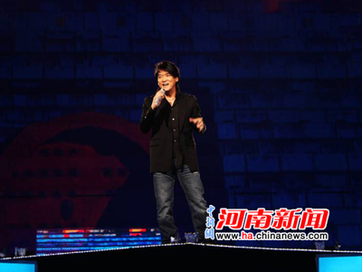 天王周华健是第三个出场。天王一出现,现场的气氛立即燃烧起来,观众用热烈的掌声传达着对周华健的喜爱和欢迎,让人也再次感受到天王的魅力和号召力。在开幕式文艺晚会上,周华健演唱了《真心英雄》、《刀剑如梦》两首经典老歌。周华健倾情投入,观众们欣喜狂欢,一些观众也兴奋地跟着天王高声唱附和,让河南省体育中心顿时沸腾起来。