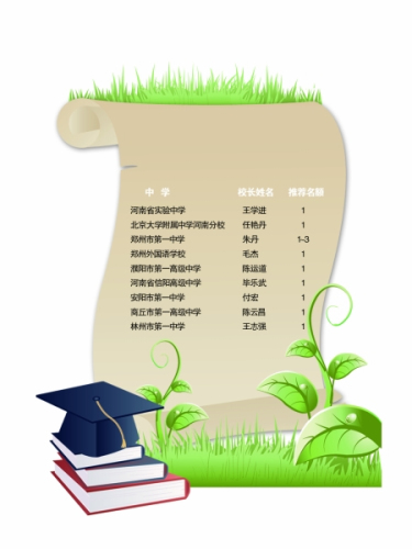 在推荐名额方面,除了郑州一中校长朱丹具备1~3个推荐名额外,其他8所省内中学均各自有1个推荐名额。