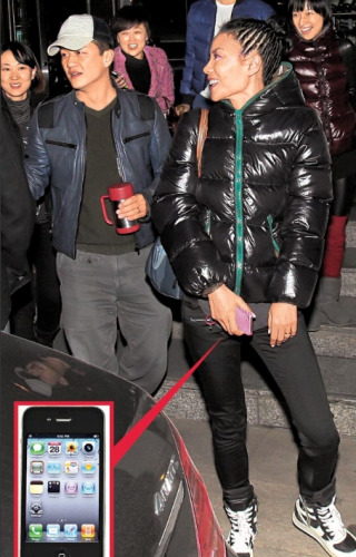 打扮潮爆的王菲手拿用了娇俏粉红机壳 iPhone 4离场,而李亚鹏却拿着保暖杯。