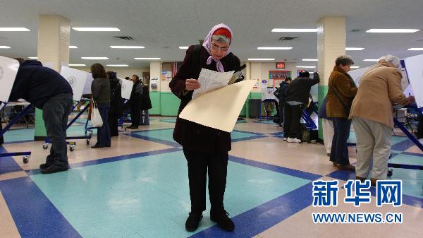 11月2日,选民在美国纽约市的一处投票站投票。当日,美国举行中期选举投票。此次选举的结果被视为检验美国总统奥巴马在过去两年施政成绩的“分数单”。 新华社记者 刘欣 摄