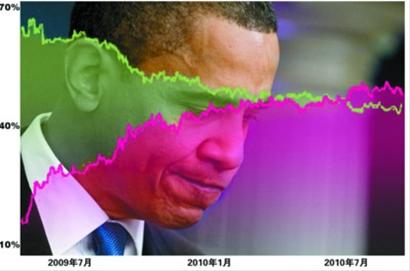 奥巴马上任以后,支持率一路走低 晚报制图 邬思蓓