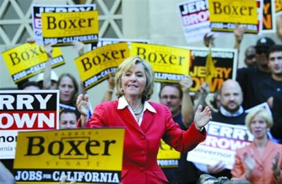寻求连任的加州民主党参议员芭芭拉·博克瑟拉票冲刺