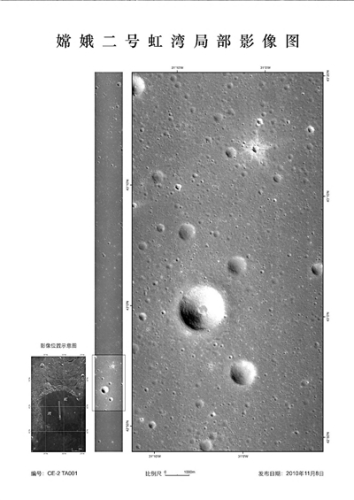 昨天,国家国防科工局首次公布嫦娥二号卫星传回的嫦娥三号预选着陆区——月球虹湾区域局部影像图等五张图片。根据该影像图,嫦娥三号探月卫星未来的落月点已大体确定。