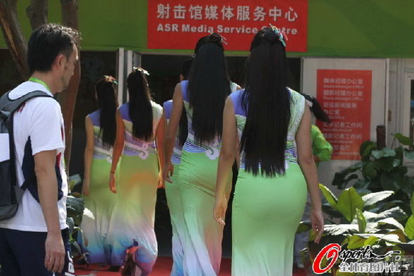 2010年11月13日,2010年广州亚运会,袁晓超男子长拳决赛夺冠,为中国代表团获得首枚金牌,为他颁奖的司仪小姐身穿中国传统旗袍,展现东方之美。