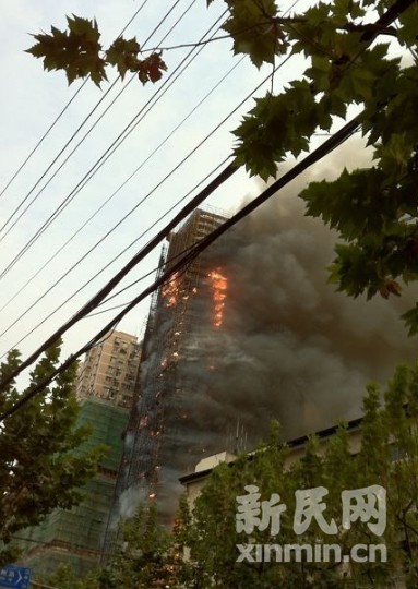 上海一栋20多层高住宅起火 不少居民未撤离(组图)