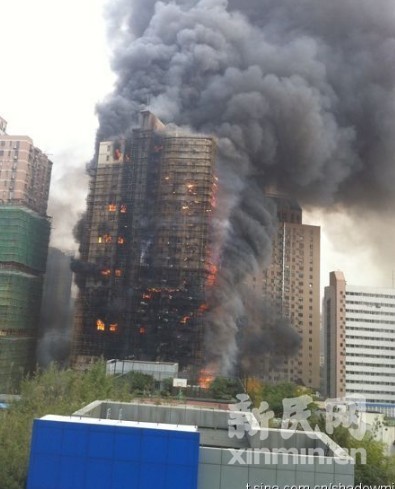 上海一栋20多层高住宅起火 不少居民未撤离(组图)