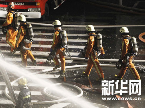 11月15日,救援人员正携带设备进入大楼内部施救。新华社记者 裴鑫 摄