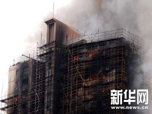 11月15日,上海余姚路胶州路高层住宅脚手架起火。新华社签约摄影师 钮一新 摄