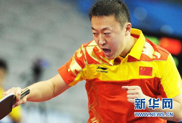 11月16日,中国选手马琳在比赛中。当日,在广州举行的第16届亚运会乒乓球男团决赛中,中国队以3比0战胜韩国队,夺得冠军。新华社记者徐家军摄