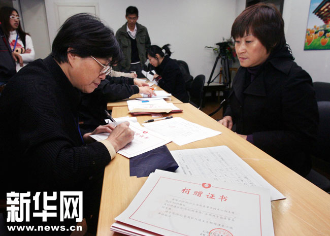 11月17日,市民在上海市慈善基金会捐款。新华社记者 刘颖摄