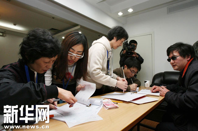 11月17日,上海市慈善基金会的工作人员在对市民的个人捐款进行登记。