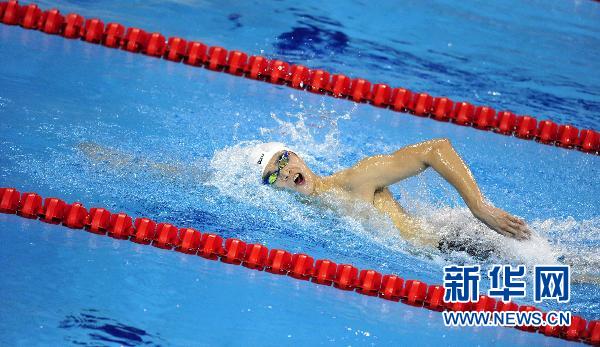 11月18日,中国选手孙杨在比赛中。当日,在第16届亚运会游泳男子1500米自由泳决赛中,孙杨以14分35秒43的成绩夺得冠军,并创造了新的亚洲纪录。新华社记者陈晔华摄