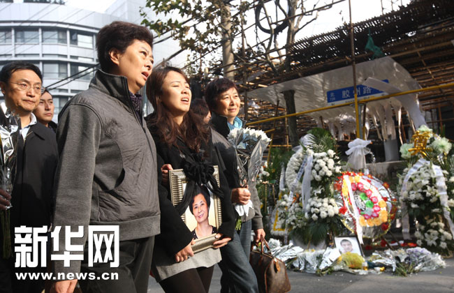 新华网上海11月21日电21日是上海“11·15”特别重大火灾事故发生的第7天,遇难者亲属以及社会各界人士纷纷来到胶州路728号火灾事故现场,向事故遇难者致哀。