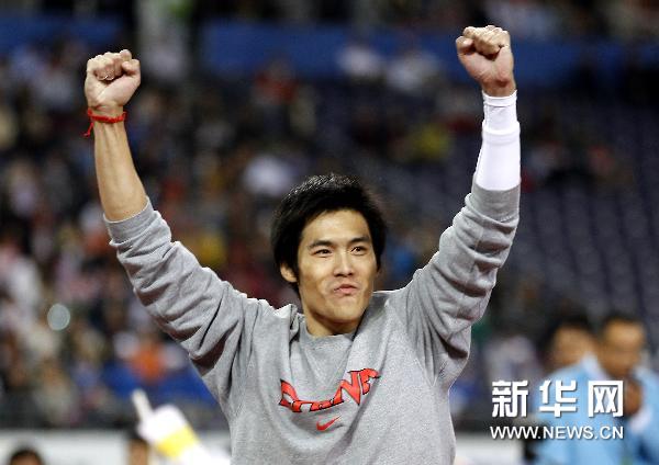 11月22日,杨雁盛在夺冠后庆祝。当日,在广州奥林匹克中心体育场举行的第16届亚运会男子撑杆跳高比赛中,中国选手杨雁盛夺得冠军。新华社记者廖宇杰摄