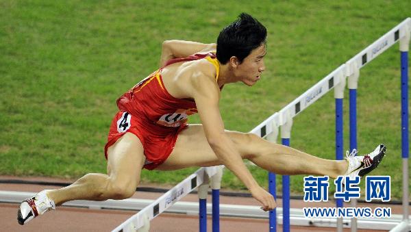 11月22日,中国选手刘翔在男子110米栏预赛中。当日,在广州进行的第16届亚运会男子110米栏预赛中,刘翔以13秒48位列小组第一,轻松晋级决赛。新华社记者格桑达瓦摄