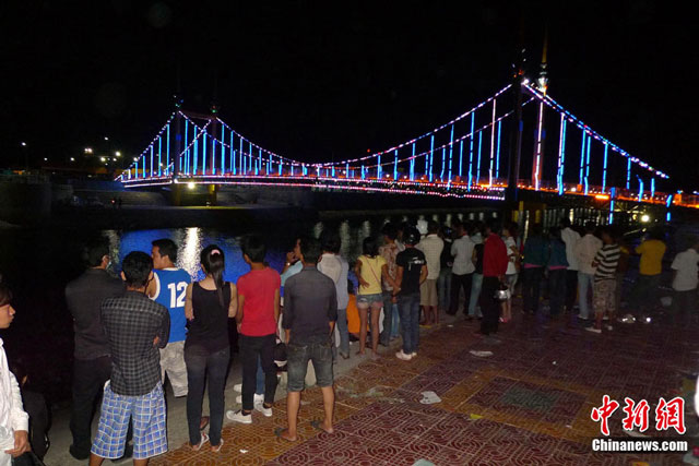 当地时间11月23日晚,距离柬埔寨金边市发生的踩踏惨剧不足24小时,四、五百名当地市民在事发地的河堤上哀悼事件中的死者。截至目前,惨剧已造成逾千人死伤。中新社发 周志彬 摄