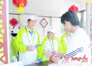 在广州体育馆新生活驿站,活跃着一群热情、善良有礼、不辞辛苦默默付出的志愿者身影。其中有一位老人志愿者经常忙碌在站内,用流利的外语和方言服务一个个外地游客。老人精湛的语言技术无不让外地友人惊叹,纷纷向老人竖起大拇指,并赞叹他为“语言神通”。在其他志愿者眼中,这位老人热情、亲切,多次被推荐为广州体育馆驿站的“服务之星”。