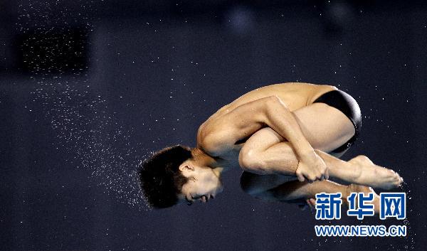 11月26日,中国选手火亮在比赛中。当日,在广州举行的第16届亚运会男子十米跳台预赛中,火亮以536.10分的总成绩排名第一,晋级决赛。新华社记者费茂华摄