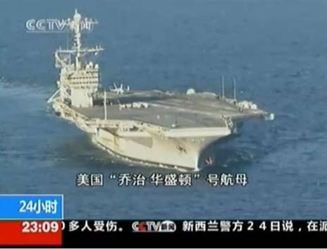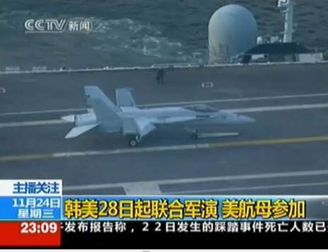 视频截图:美韩28日军演 美航母“参战” 来源:中央电视台